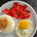 Good for 2 without rice. Generous serving of sizzling chopped pork with egg