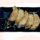 5pcs fried gyoza in curry sauce comes with rice, cabbage, miso soup and fruit