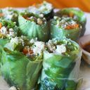 Fresh vegetables wrapped in rice paper served with brown peanut sauce