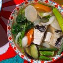 Shrimp, kangkong (water spinach), string beans, radish, eggplant & okra in tamarind broth. Whole serving: good for 3-4 pax