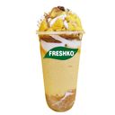 22oz. Large. Real & fresh mango plain shake with jelly topped with cream and mango cubes, ice cream & caramel syrup