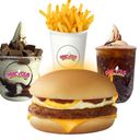 came with smal cokefloat, coke, fries, and halo². No burger